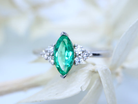 14k white gold Marquise shaped emerald ring, Emerald cluster ring, Cluster engagement ring, Emerald engagement ring, cluster ring gold