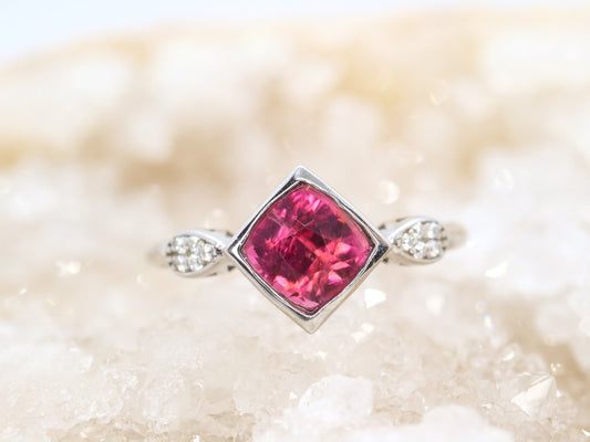14k white gold natural tourmaline ring, Gemstone engagement ring, Engagement ring