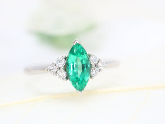 14k write gold Marquise shaped emerald ring, Emerald cluster ring, Cluster engagement ring, Emerald engagement ring, cluster ring gold