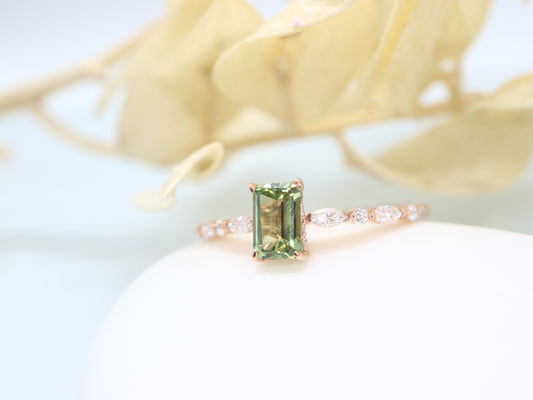 14 rose gold green sapphire and moissinate ring, bridesmaids ring, ring for women, gifts for her