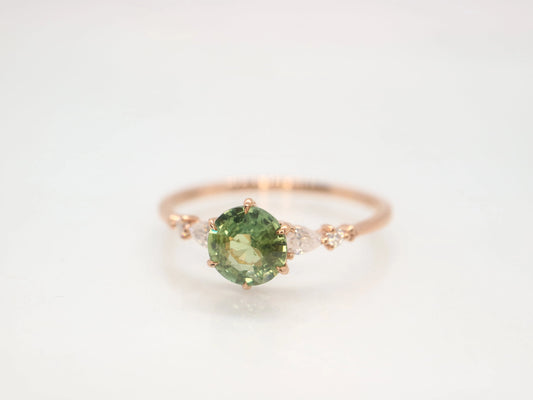 14k rose gold green sapphire and diamond ring, Green sapphire and diamond engagement ring