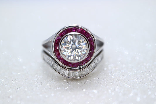 14k white gold with halo natural ruby, 1.5ct Moissanite Engagement Ring, natural diamond wedding band