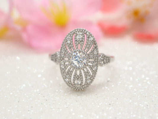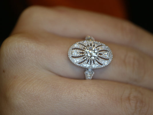 14k White gold vintage inspired ring, Antique vintage ring, Art deco engagement ring, Anniversary ring, Diamonds accents. Promise ring