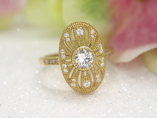 14k gold Art Deco Vintage moissinate diamond ring, Proposal bridal ring, Vintage moissanite engagement ring, Gift for her