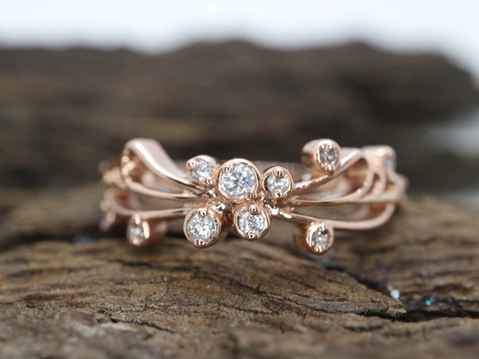 14k Rose gold diamond butterfly wedding engagement ring- Anniversary gift, wedding band