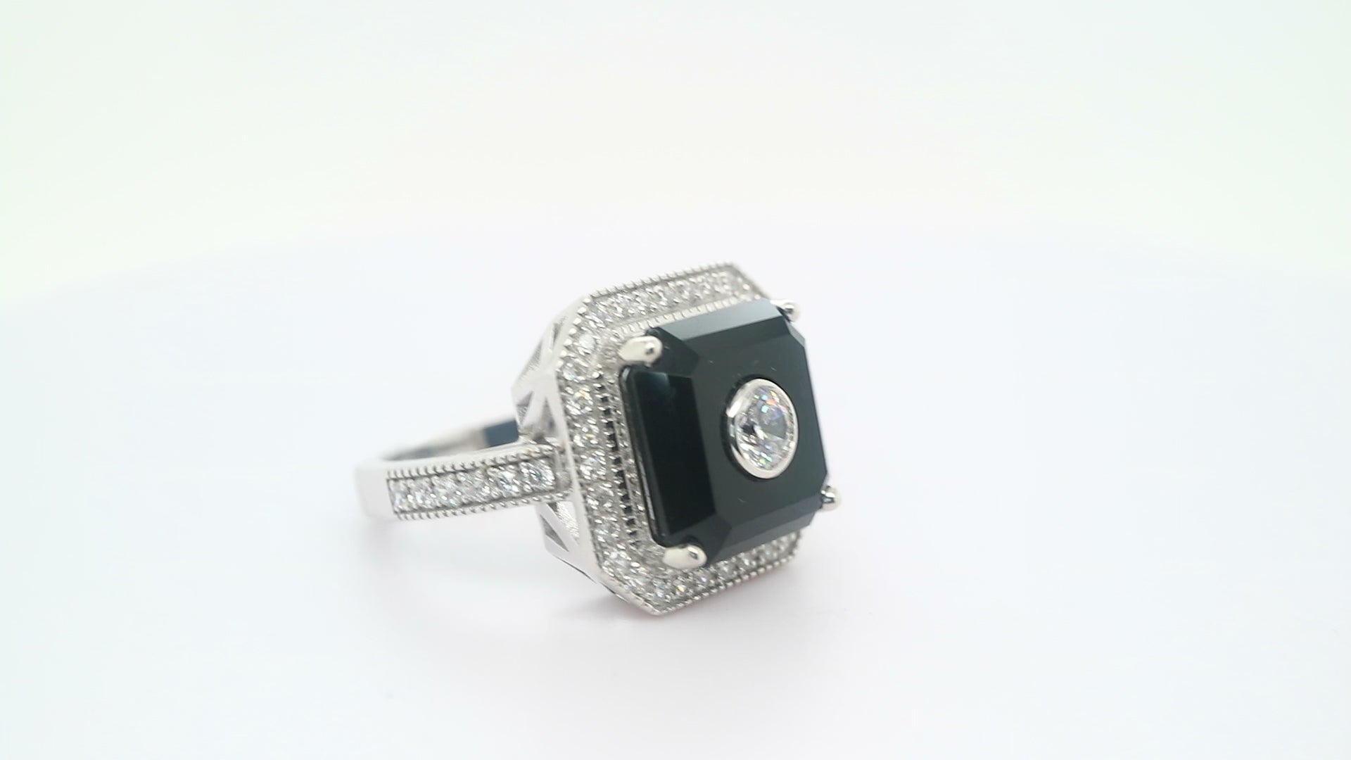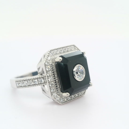 Art deco black onyx ring in Sterling silver and CZ - Black onyx Art deco ring