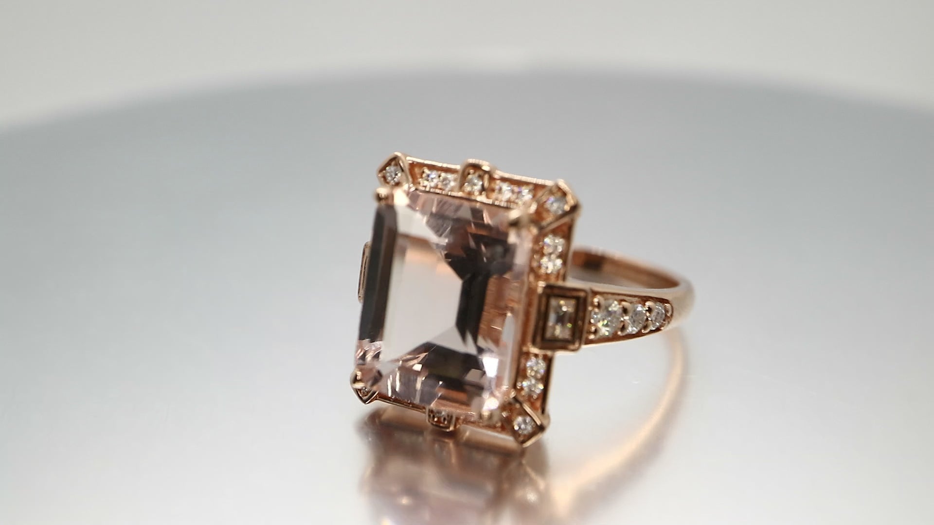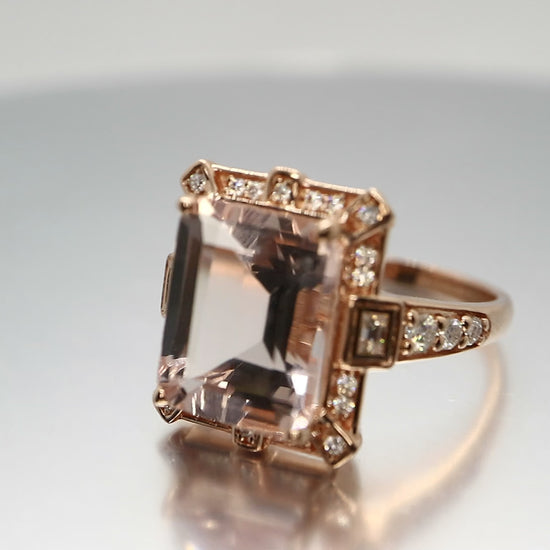 Art Deco vintage Morganite diamond ring in rose gold - art deco vintage ring, Rose gold engagement ring, Rose gold wedding ring,