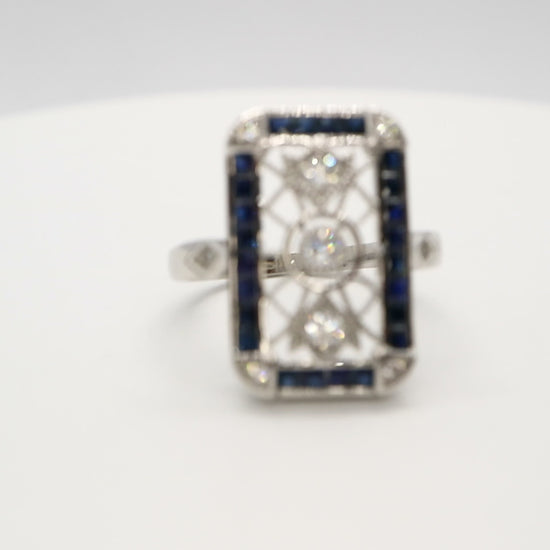Blue sapphire sterling silver ring, Art deco engagement ring, Vintage sapphire engagement ring, vintage wedding ring, sapphire ring