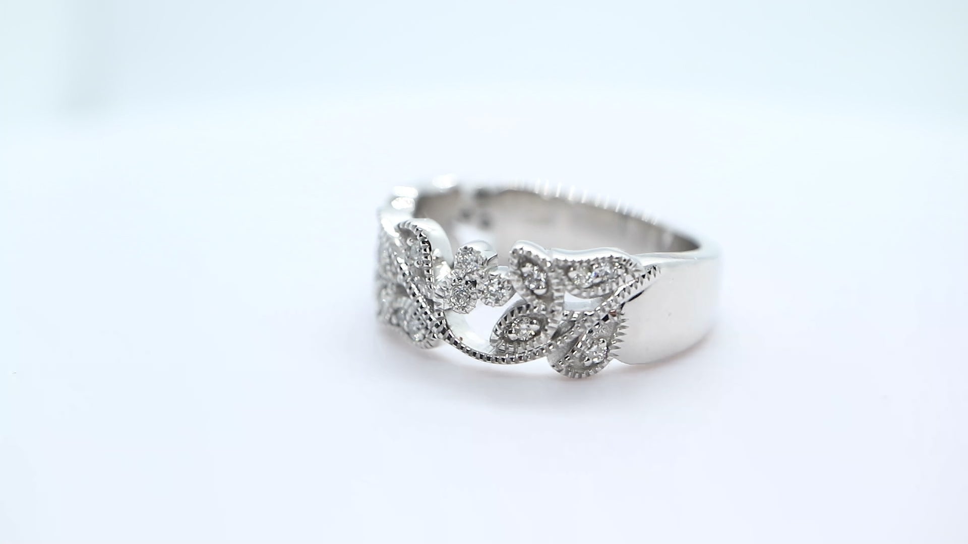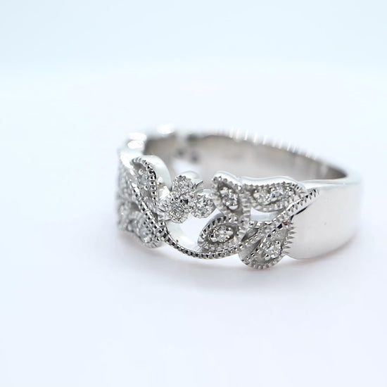 14k Vine and leaf white gold diamond ring , Filigree diamond ring, natural inspired round sapphire and diamond vine band