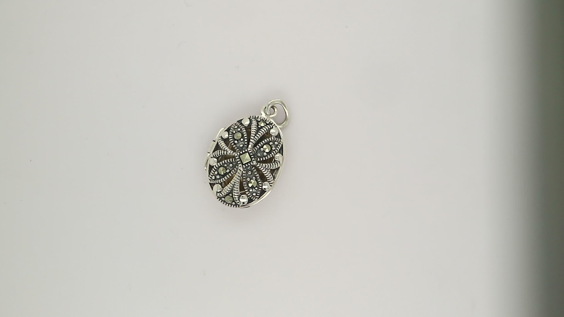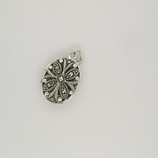 Flower locket in sterling silver with marcasite