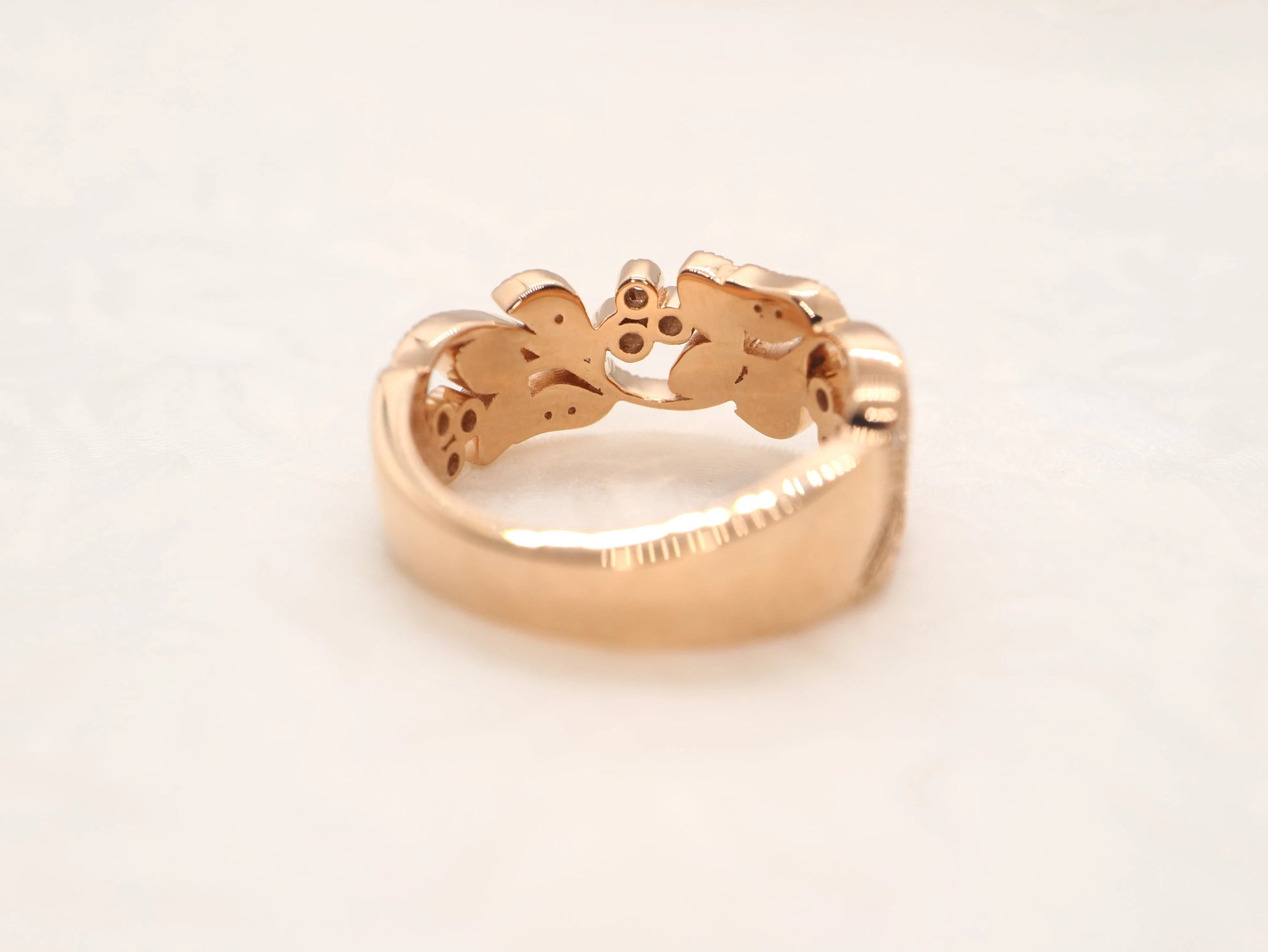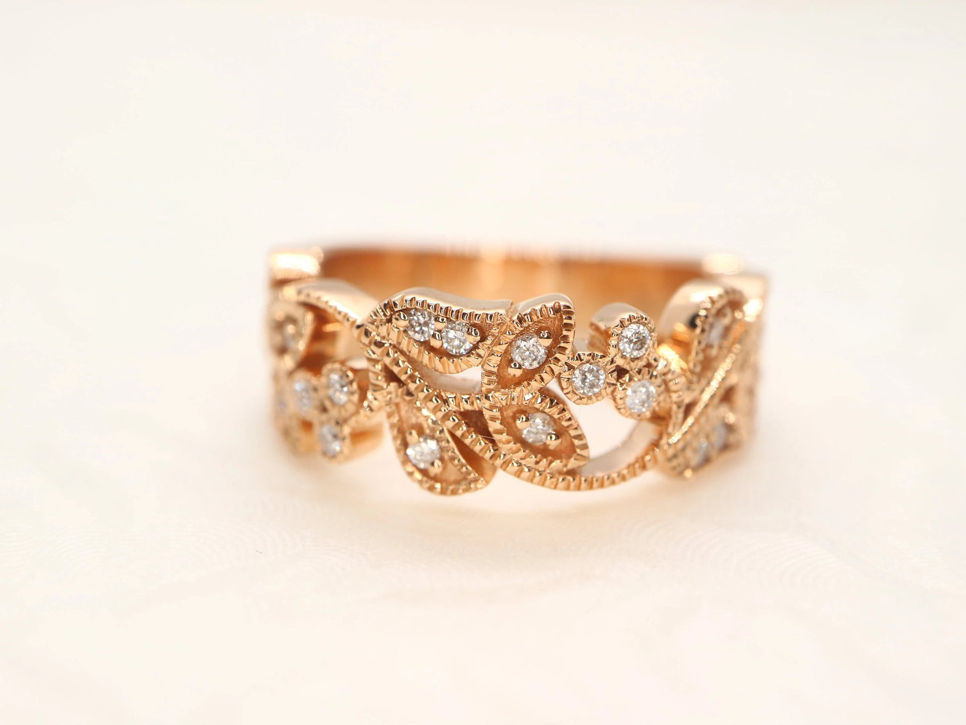 Vine and leaf rose gold diamond ring - Filigree diamond ringGold floral wedding band for women, Vintage style wedding ring